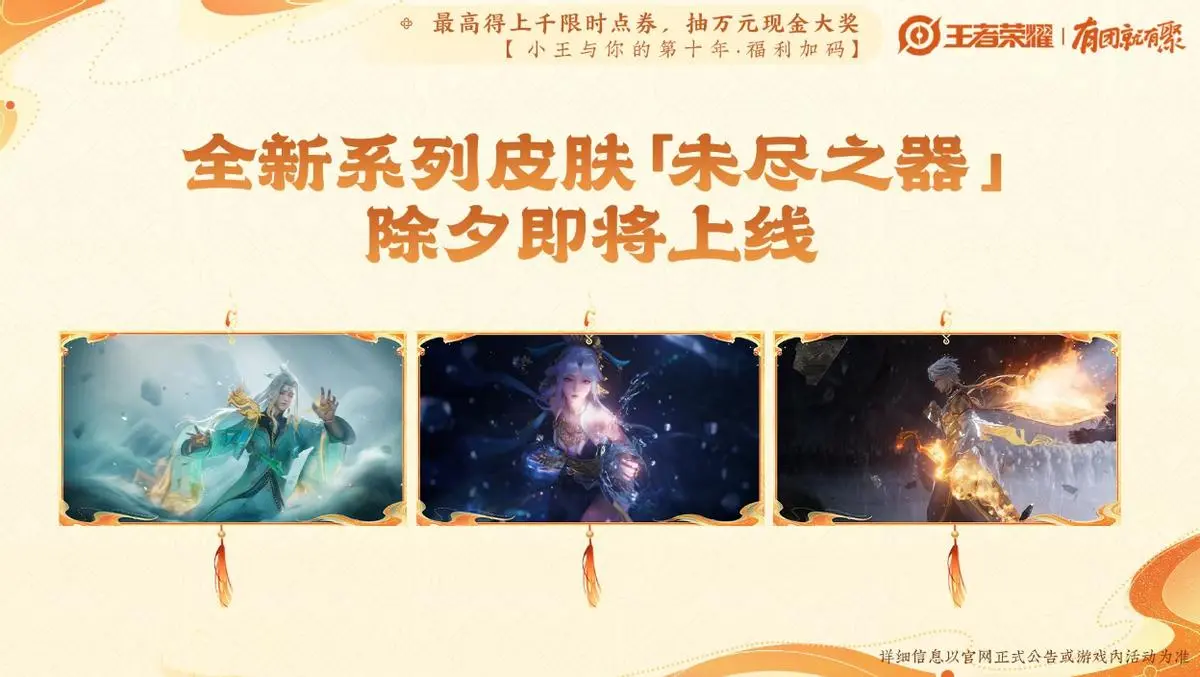 今年官方还推出了一套主题系列皮肤,看照片大家都能猜出来是赵怀真、嫦娥和曜,三款皮肤有一种古风美感,具体什么品质还不知道,也不知道价格。个人猜测,这三款皮肤应该不会抢了春节限定皮肤的风头,顶多是传说品质,具体定位还要等官方的爆料。